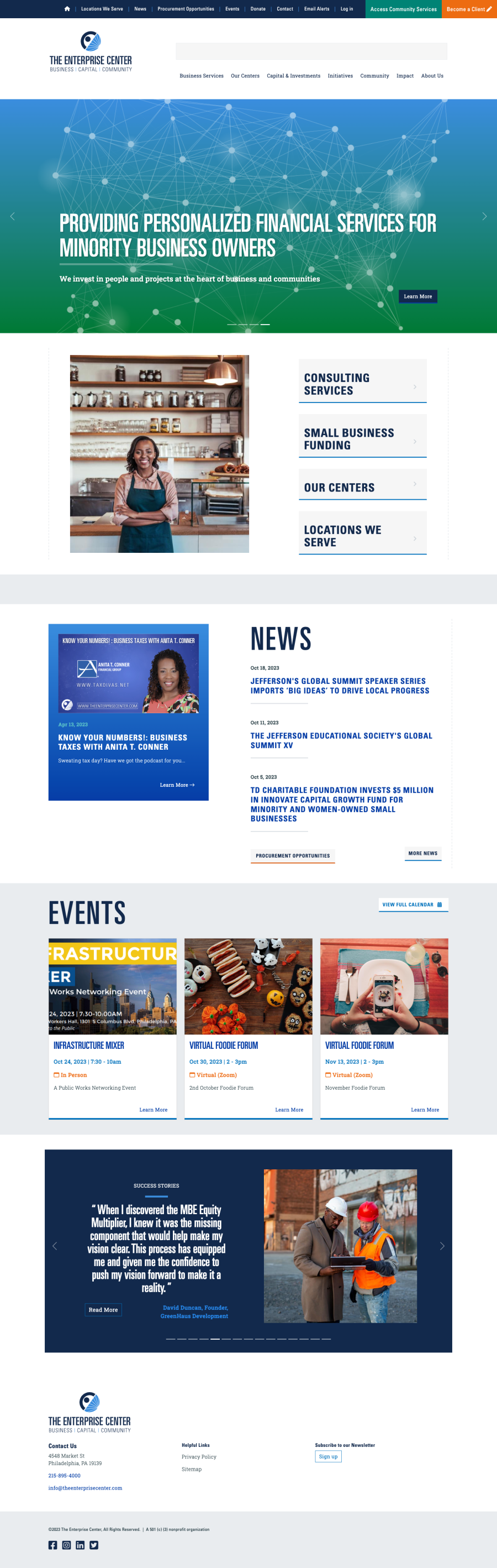 For more than three decades, The Enterprise Center has promoted racial and economic equity by supporting the growth of diverse small businesses and partnering with West Philadelphia communities on revitalization strategies. As a trusted mediator, we bring together businesses, communities, partners, and resource providers with the shared goal of equal opportunity and prosperity for all.